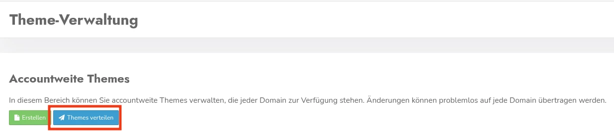 2. Es wurde ein accountweites Theme bearbeitet Damit die Änderungen am Theme in allen zugeordneten Accounts zur Verfügung stehen, muss das Theme nach dem Speichern noch verteilt werden. Die Option befindet direkt über der Liste mit den accountweiten Themes: