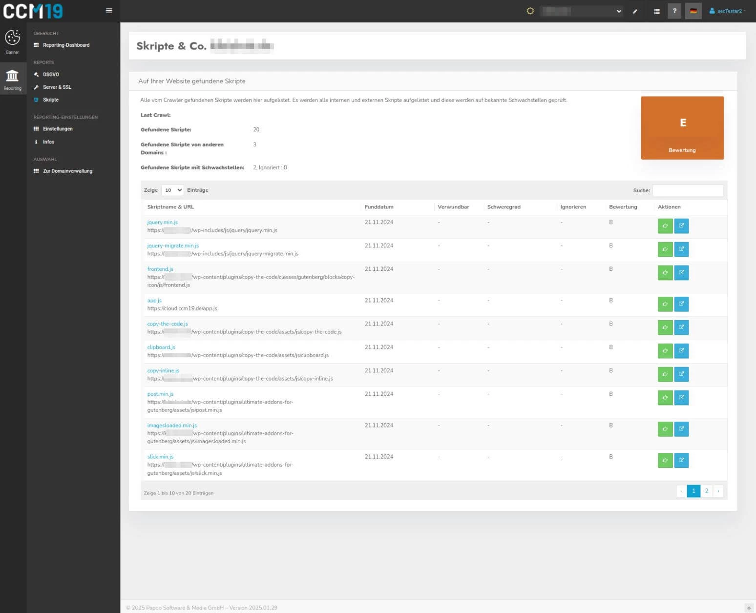 Tous les scripts sont analysés afin de détecter les vulnérabilités connues qui pourraient constituer des surfaces d'attaque. Les problèmes trouvés sont listés de manière transparente et détaillée.