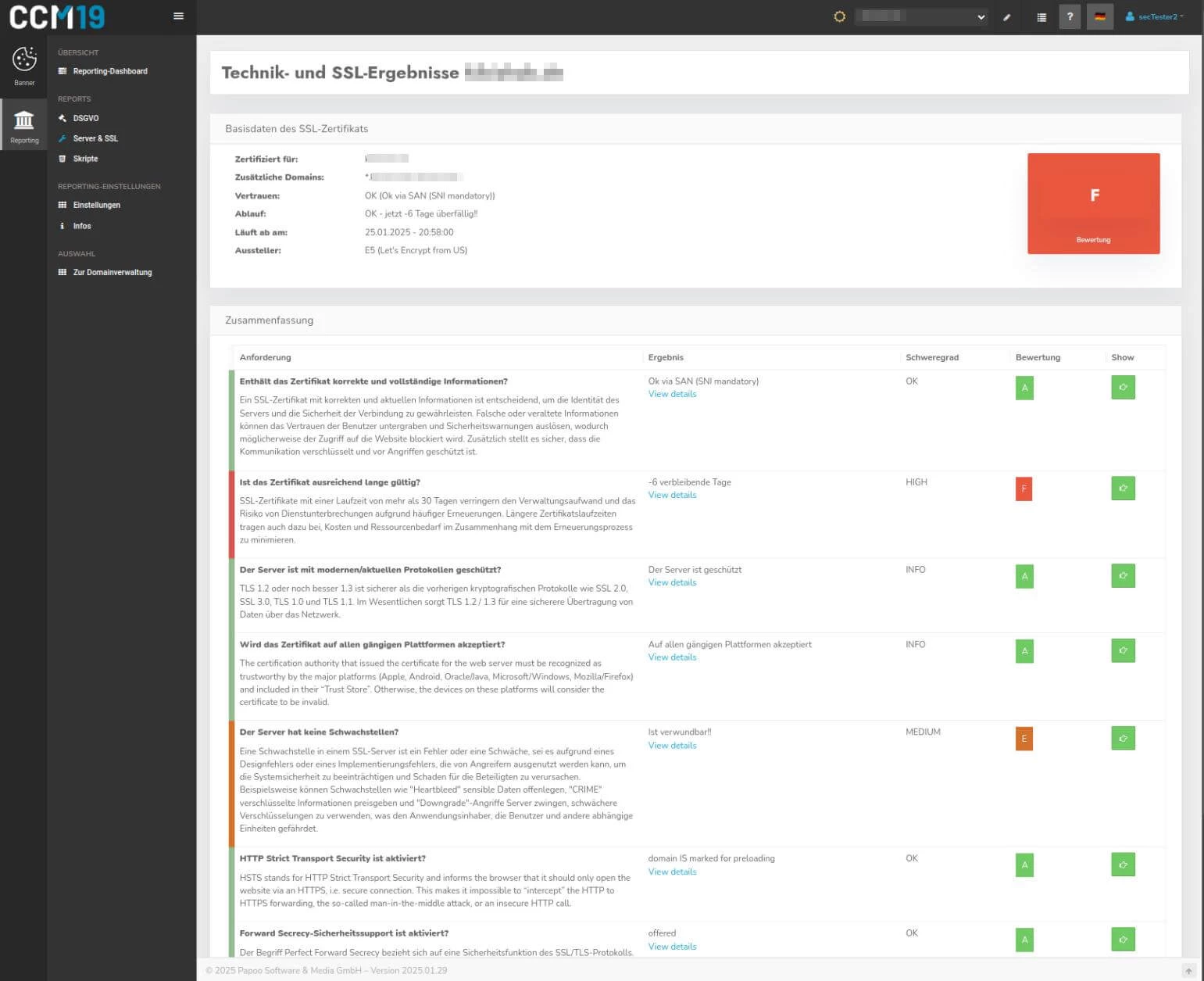 L'outil de reporting vérifie la validité de vos certificats, leur configuration correcte et les points faibles connus.